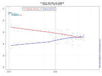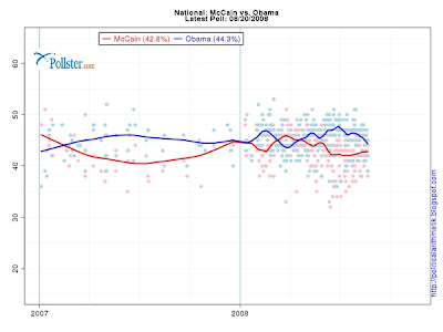 A 3 dias do início da Convenção Democrata em Denver, surgem um conjunto de projecções que colocam Barack Obama e John MacCain lado a lado, apimentando, decisivamente, as expectativas para os 3 meses finais. Ao que se diz, esta aproximação poder-se-á dever a uma multiplicidade de factores: a longa ausência do democrata na viagem à Europa ou nas suas férias no Hawaii, a conjuntura internacional com a crise da Geórgia, a saturação do eleitorado pela imagem de Obama e, ainda, a aproximação de MacCain ao eleitorado tradicional republicano com a eventual escolha de Mitt Romney como seu n.º 2. Segundo a National Trend da Pollster, o Senador Democrata ainda lidera com 44,3% contra 42,8% do Republicano. Igualmente, para a CNN Poll of Polls, Obama estará com 44% das intenções de voto contra 42% de MacCain. Já para a Real Clear Politics, o trend nacional é de 44,8% para Obama contra 43,4% de MacCain. Assim, ao contrário do que era expectável e tradicional na eleição presidencial americana, já muitos analistas consideram que a escolha do Vice-Presidente, por qualquer dos candidatos, pode ser decisiva para o resultado final. Segundo foi tornado público, Barack Obama tenciona anunciar o escolhido ainda este fim-de-semana, e, ao que parece, já começou a fechar algumas portas, ficando muito próximo do um trio constituído pelo Sen. Evan Bayh, do Indiana, Sen. Joe Biden, do Delaware e o Governador da Virginia, Tim Kaine.